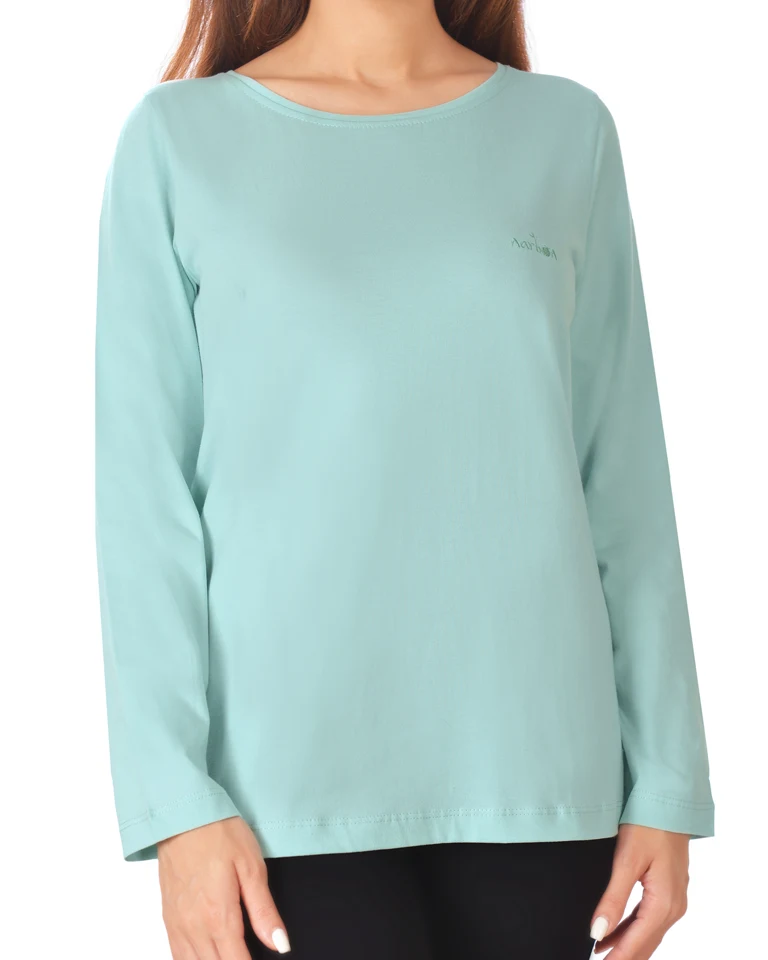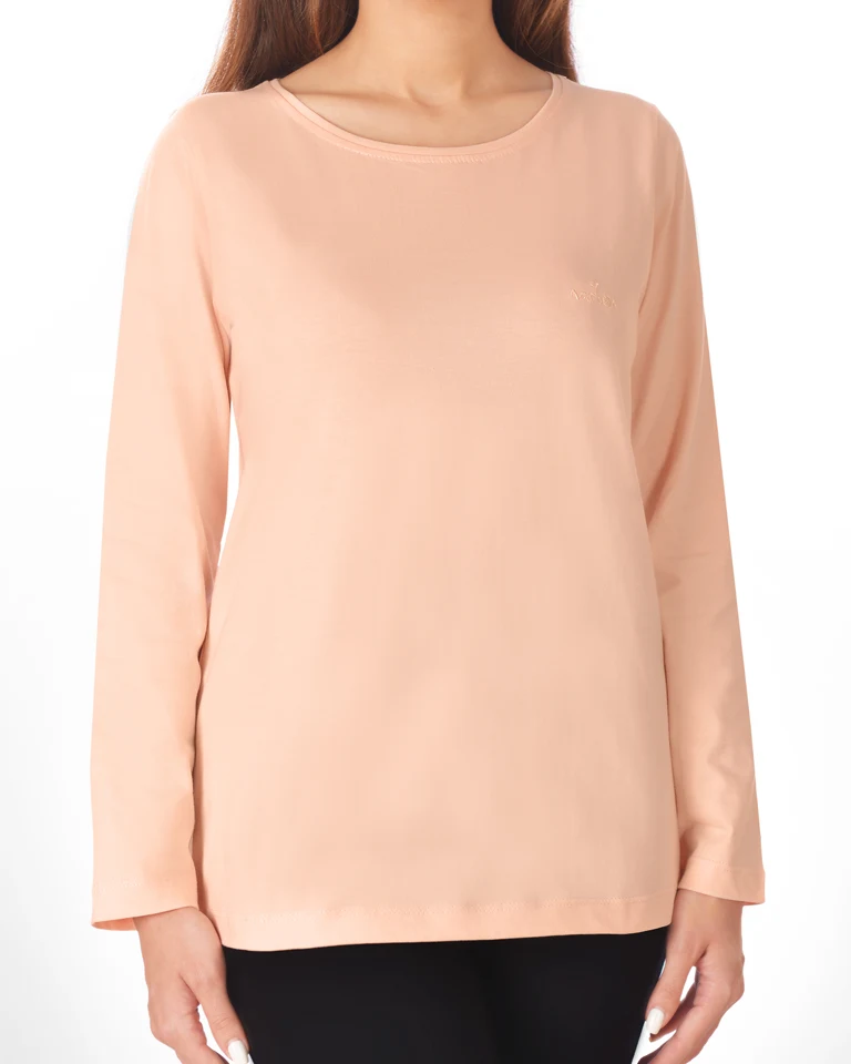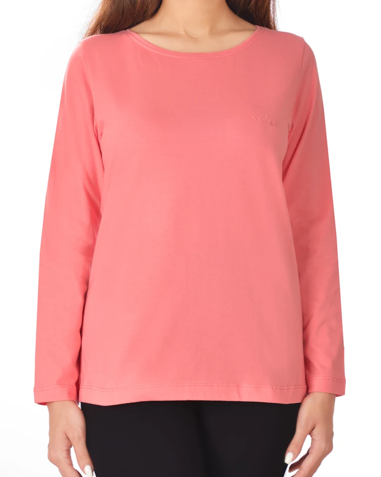این تیشرت زنانه دارای یقه گرد و آستین های بلند میباشد.