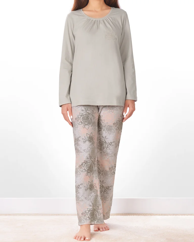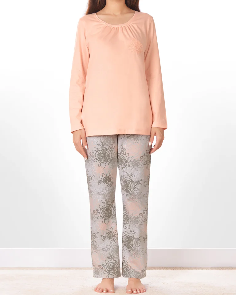 تیشرت آستین بلند و شلوار بلند رز زنانه – کد ۳۹۵۱