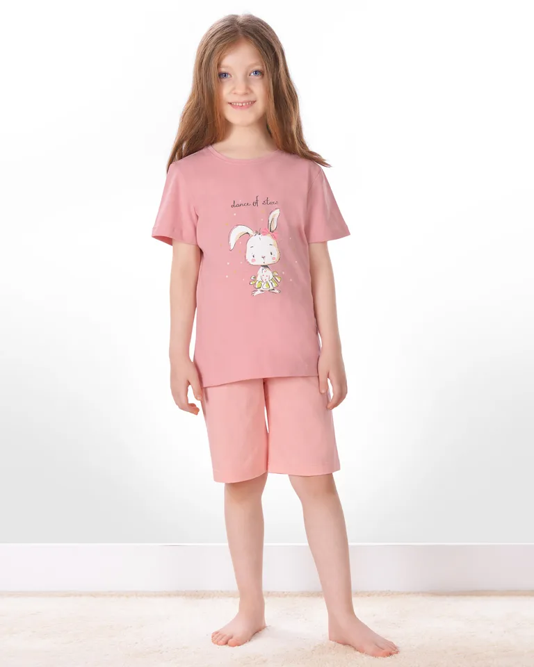 اگر به دنبال یک ست لباس راحتی دخترانه زیبا و باکیفیت برای کودک دلبندتان هستید، تیشرت و شلوارک خرگوش بازیگوش بچه گانه با کد ۱۶۷۶ انتخابی ایدهآل است.