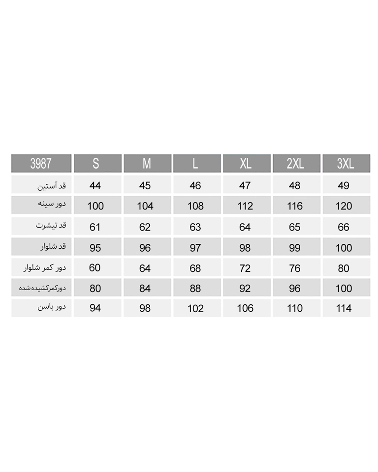این ست زنانه در رنگ های پرطرفدار و زیبای سبز، صورتی و سرمه ای عرضه میشود و ۶ سایز متنوع شامل S ،M ، L، XL , 2XL , 3XL را دارد.