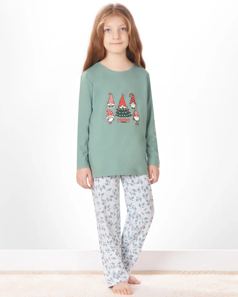 این ست دخترانه در دو رنگ شاد و کودک‌پسند سبز و پسته ای طراحی و تولید شده و طرح کریسمسی بر روی تیشرت، ظاهری بامزه و دوست‌داشتنی به آن بخشیده است.