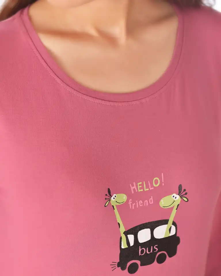 بر روی سینه تیشرت این ست زنانه طرح بسیار زیبایی چاپ گردیده است.