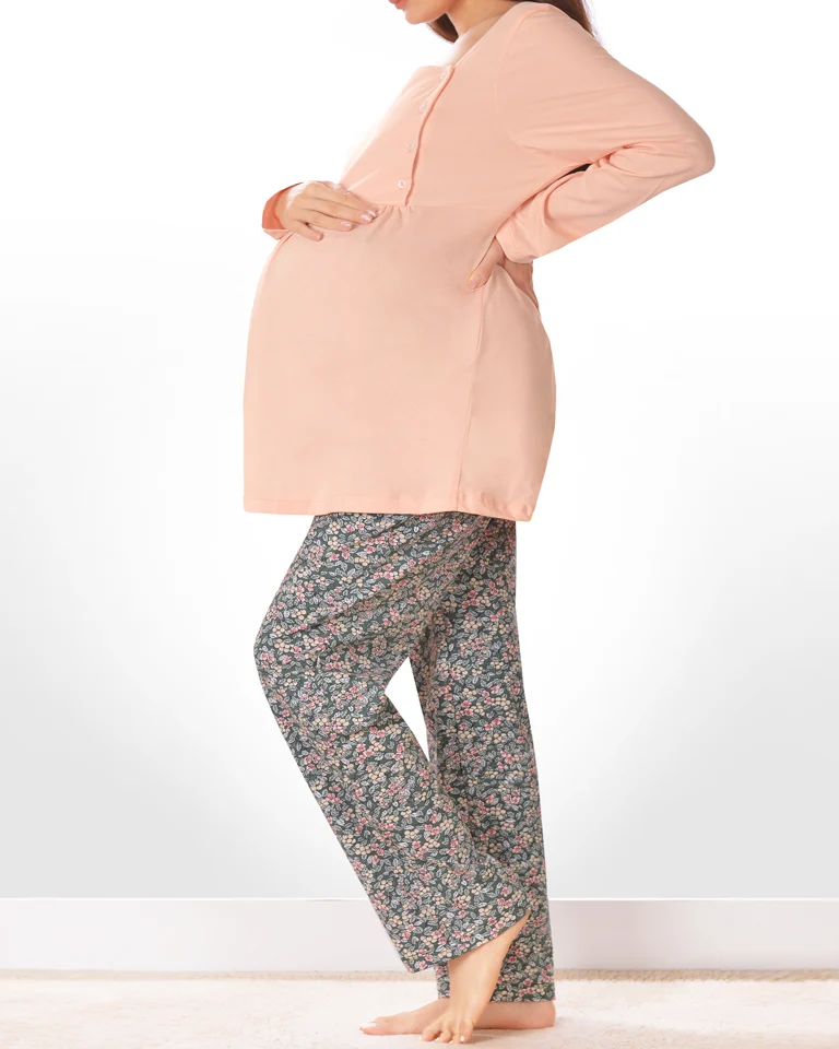 ۴ دکمه باز شونده در زیر یقه تیشرت این ست زنانه طراحی شده است که مناسب بانوان در دوران شیردهی نیز می باشد.